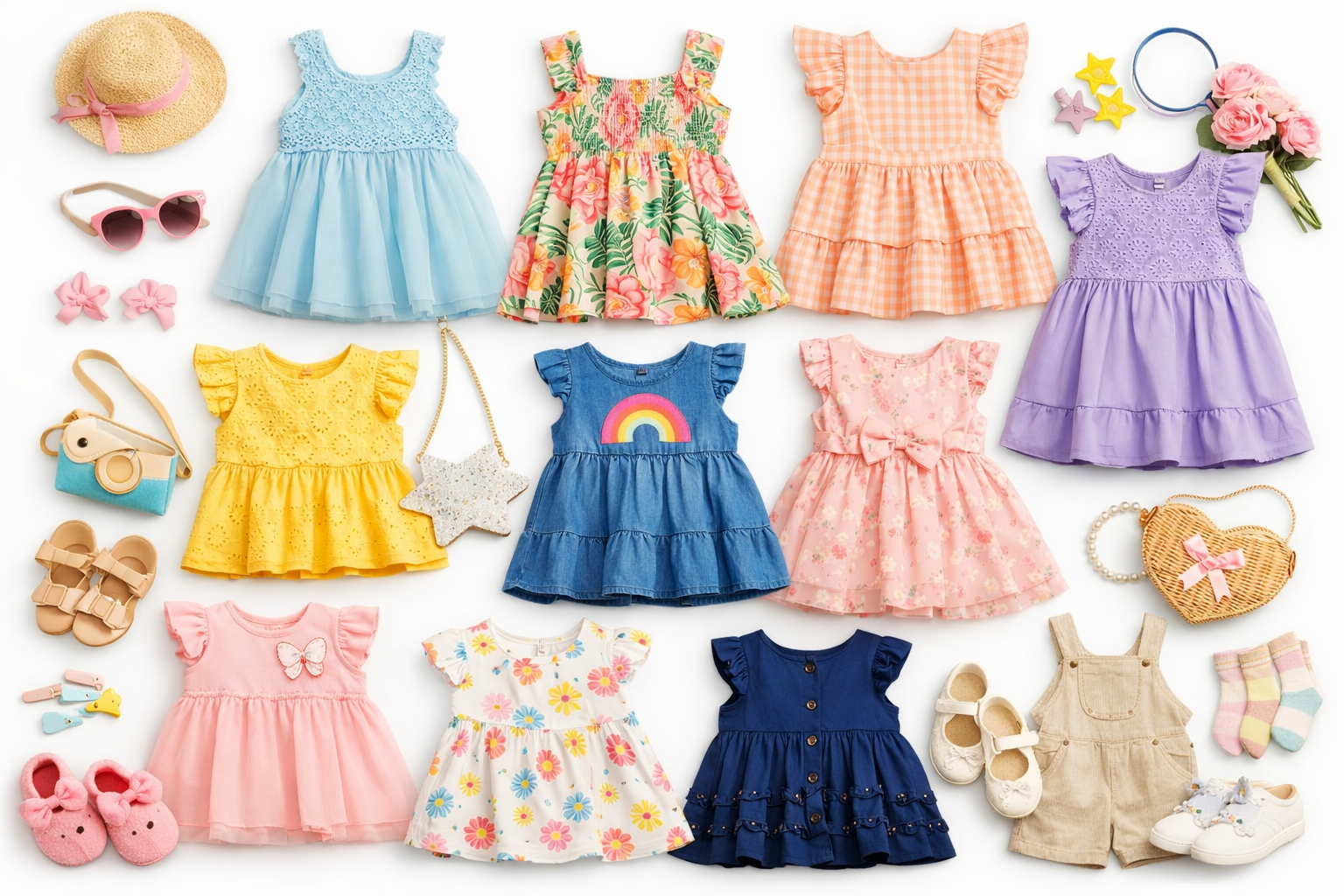 We deal in a wide array of kid’s clothing designs and patterns that range across different types of woven, knitted, and stitched dresses with an enormous variety of colors, crafts, and prints. Our line of kid’s dresses includes Baby knitwear, Baby suits, Baby pants, Baby T-shirts, Children’s occasional dresses, Children’s uniforms, Children’s Denim Jeans, Children’s night suits, Kid’s woolen clothes, Kid’s camping dresses, Kid’s sportswear, Girl’s party wear, Girl’s ethnic wear, Girl’s traditional dresses, Girl’s smocking dress, Girl’s embroidery dresses, Girl’s skirts, Girl’s tops, Girl’s coats, Boy’s T-shirts, Boy’s shirts, Boy’s sweaters, Boy’s jackets, Boy’s sweatshirts, Boy’s hoodies, Boy’s kurtas, Boy’s pyjamas, Boy’s sleepwear, and other kids dresses covering all occasions, styles, and purposes.