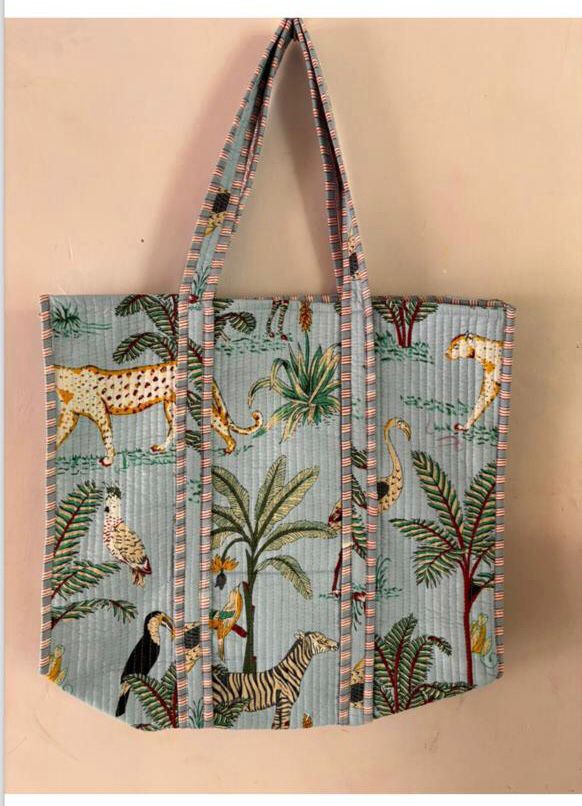 Make a statement with our tote bag, crafted from a beautiful fusion of hand block printed and digitally printed fabric. Traditional hand block printing brings an artisanal, organic touch with its detailed patterns, while modern digital printing adds vibrant colors and contemporary flair — creating a bag that’s both timeless and trendy.